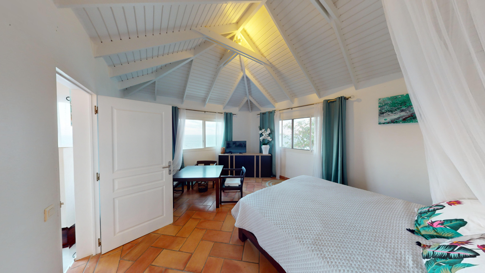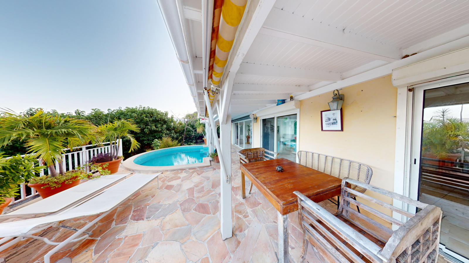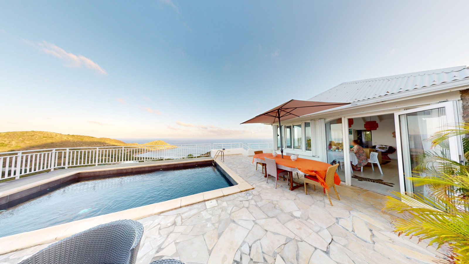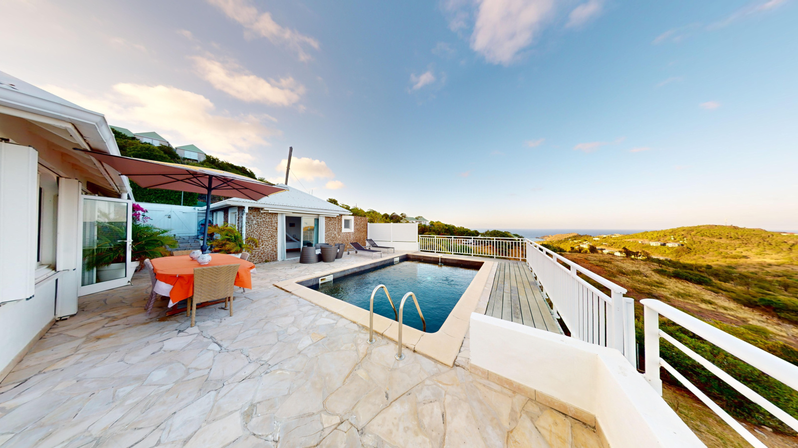 La seconde villa bénéficie d'un séjour, d'une cuisine, d'une chambre séparée, de 2 salle de douche. Elle bénéficie également d'une piscine privative avec terrasse face à la mer.