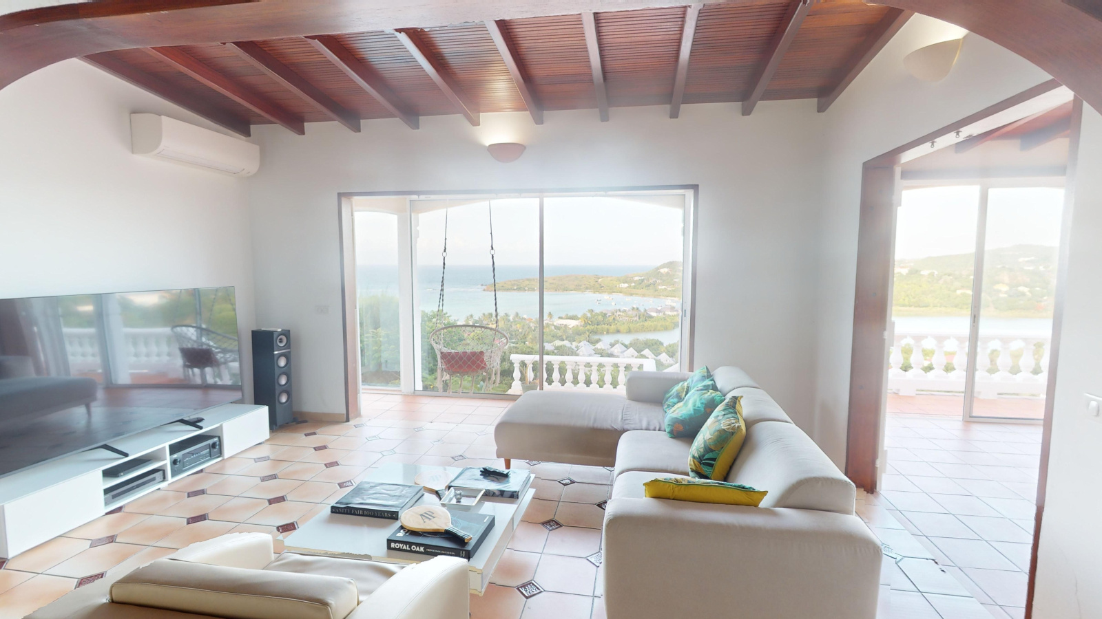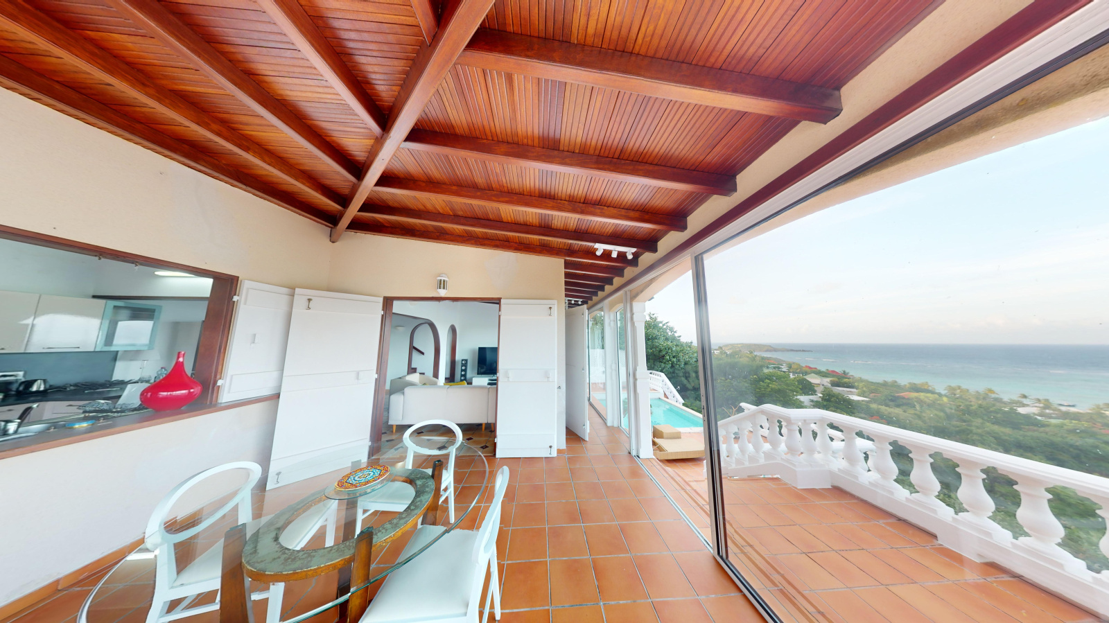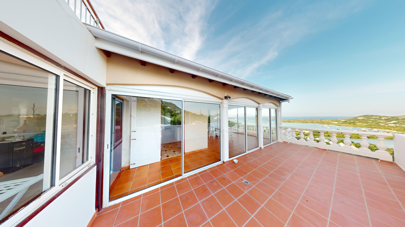 Située sur les hauteurs de Marigot : spacieuse villa avec d'agréables volumes. Tous les espaces de vie ainsi que les terrasses benéficent de la superbe vue mer .